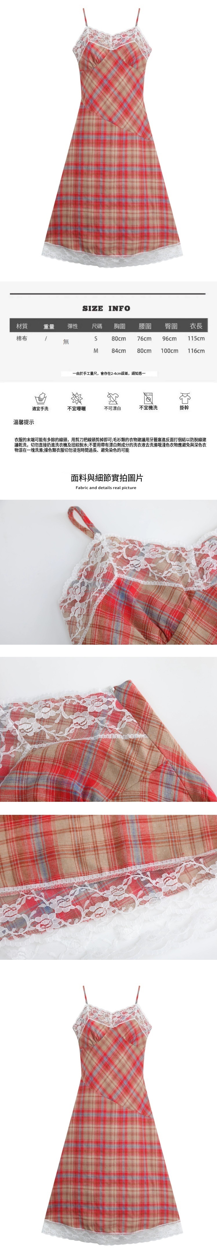 熱賣蕾絲紅格子吊帶裙(紅色)(S/M碼)(下單後聯絡客服確認發貨尺碼)