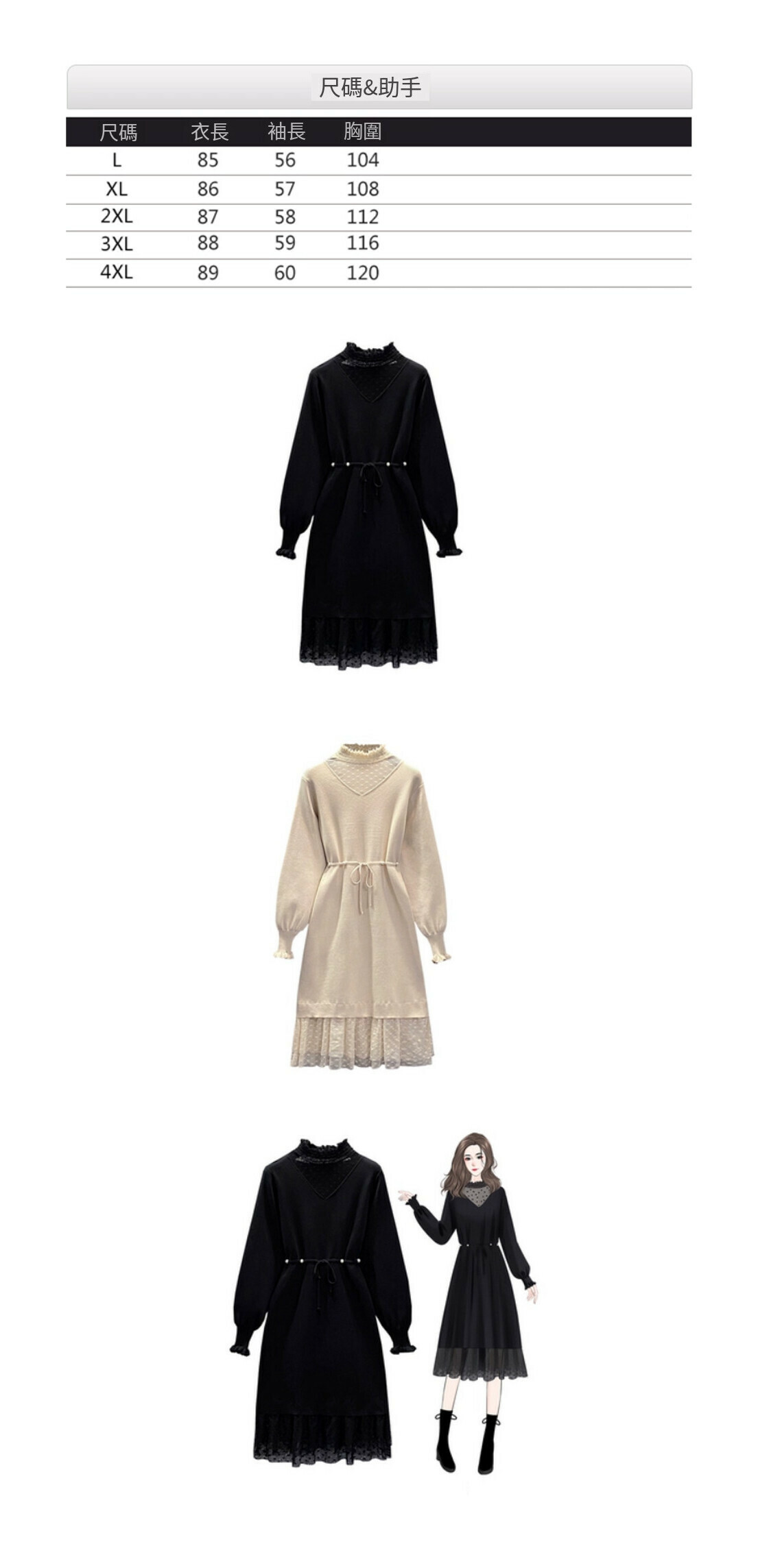 熱賣蕾絲拼接連衣裙【黑色】【L-4XL碼】(下單後請聯絡客服確認發貨尺碼)