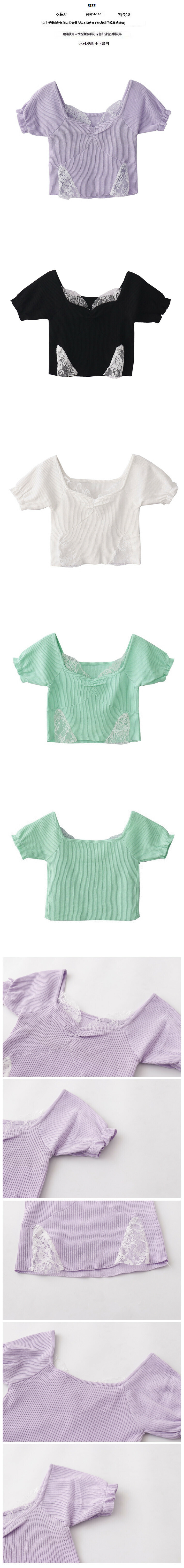 熱賣蕾絲拼接短款針織T恤【黑色】【均碼】