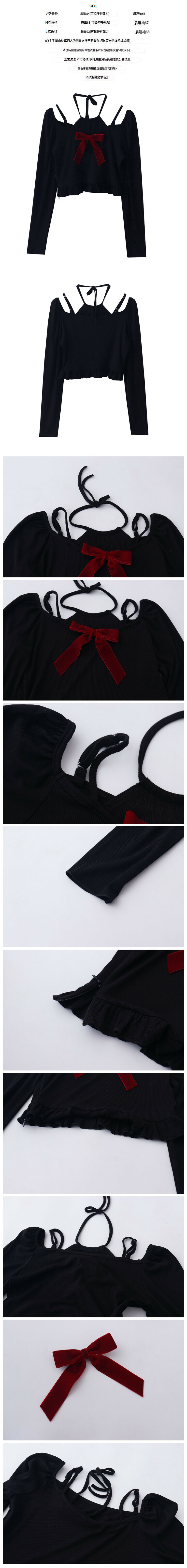熱賣系帶蝴蝶結假兩件側拉鍊T恤【黑色】【L碼】