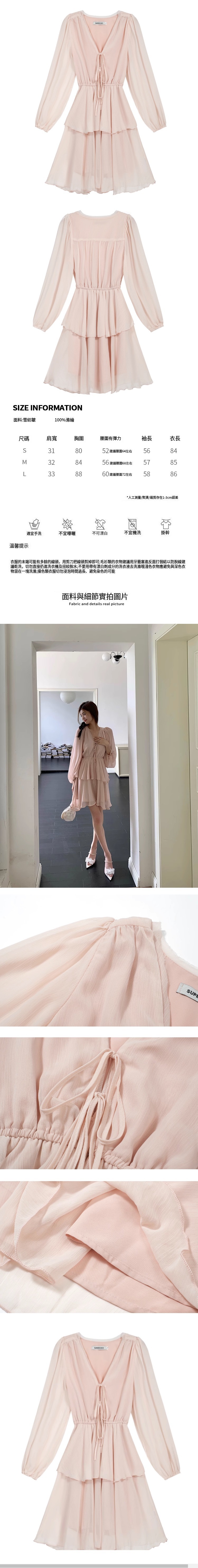 熱賣系帶燈籠袖連衣短裙(粉色)(S-L碼)(下單後聯絡客服確認發貨尺碼)