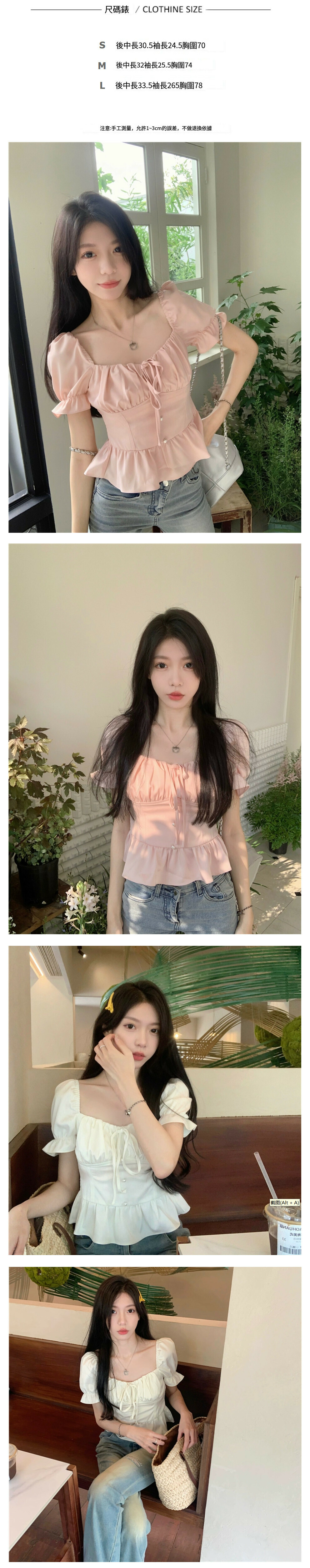 熱賣系帶方領泡泡袖襯衫【粉色】【S-L碼】(下單後請聯絡客服確認發貨尺碼)