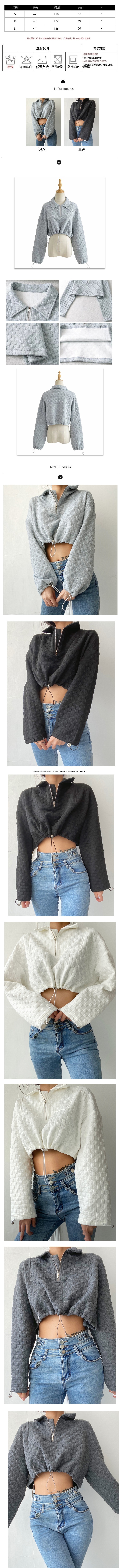 熱賣翻領抽繩收腰寬鬆短款衛衣(深灰)(S-L碼)(下單後聯絡客服確認發貨尺碼)