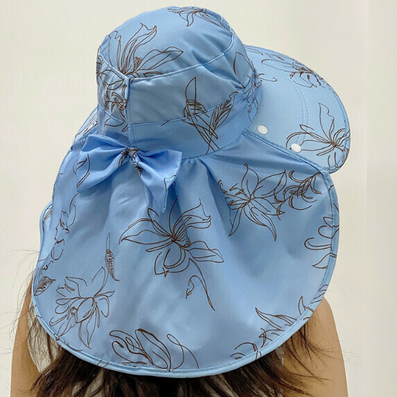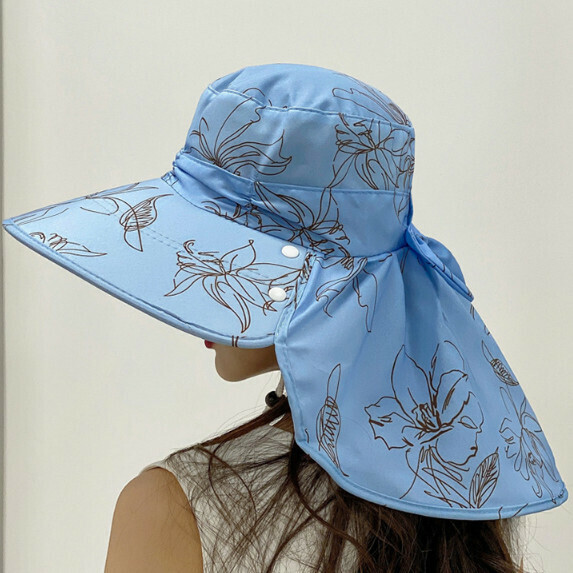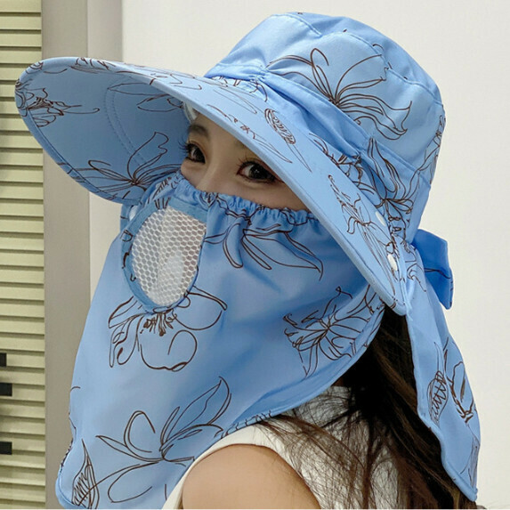 熱賣大簷遮陽防曬護臉採茶帽女(霧霾藍)