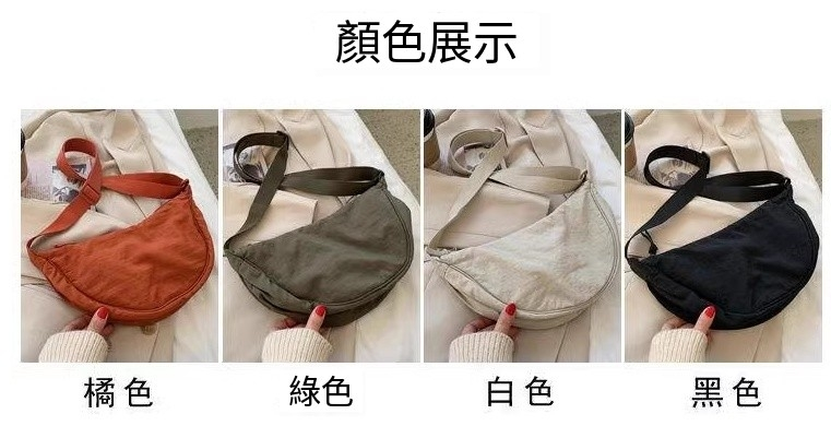 熱賣大容量帆布包女包包 餃子包 旅遊運動斜挎包【乳白色】