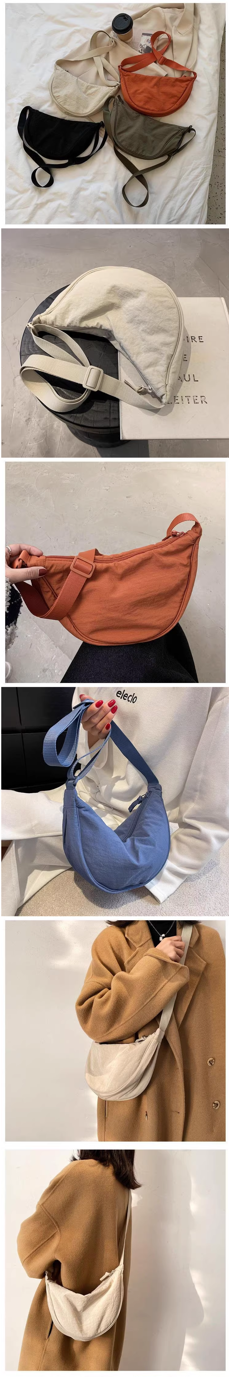 熱賣大容量帆布包女包包 餃子包 旅遊運動斜挎包【灰色】