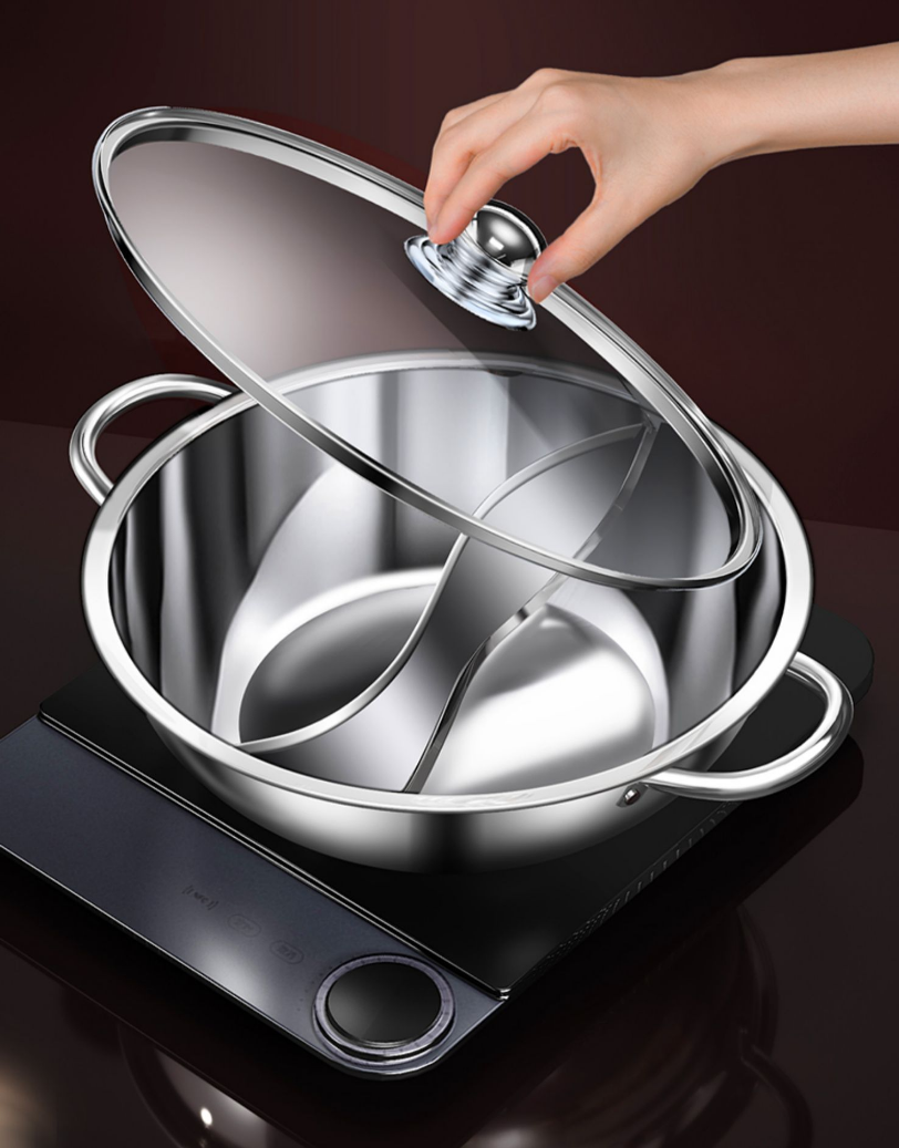 熱賣大容量平底帶蓋不銹鋼鍋(雙味鍋)(尺寸:鍋口外徑34CM*高9.5CM)
