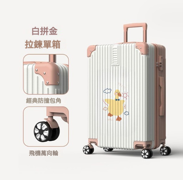 熱賣大容量拉杆行李箱【24寸】【A1270拉鍊款-白色】