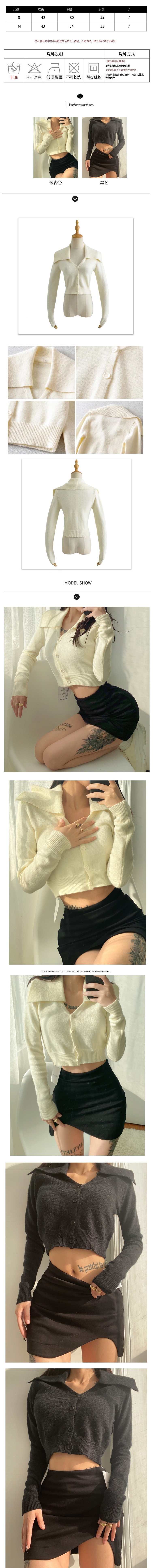 熱賣大翻領高腰短款長袖針織開衫(黑色)(S/M碼)(下單後聯絡客服確認發貨尺碼)