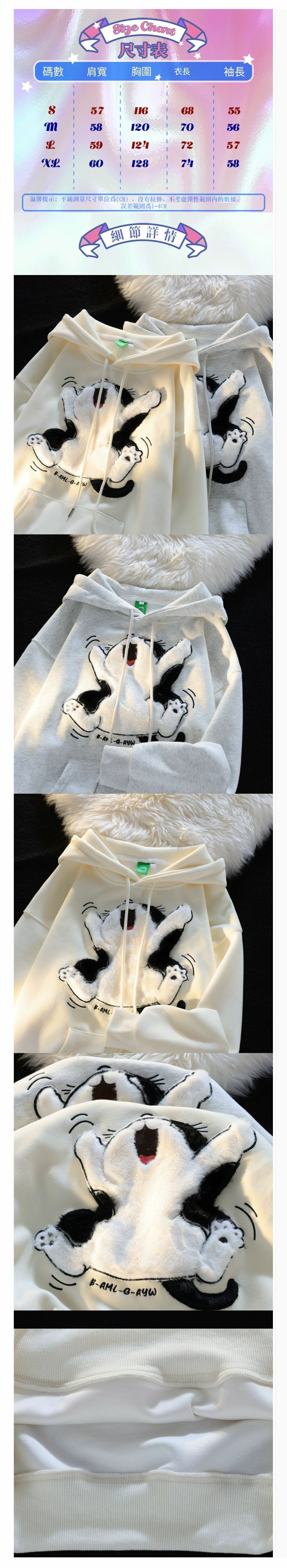 熱賣慵懶貓刺繡連帽衛衣【杏色】【S-XL碼】(下單後請聯絡客服確認發貨尺碼)