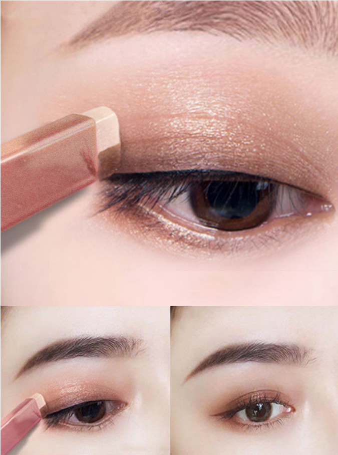熱賣懶人雙色漸變防水不飛粉眼影棒(02棕咖啡)