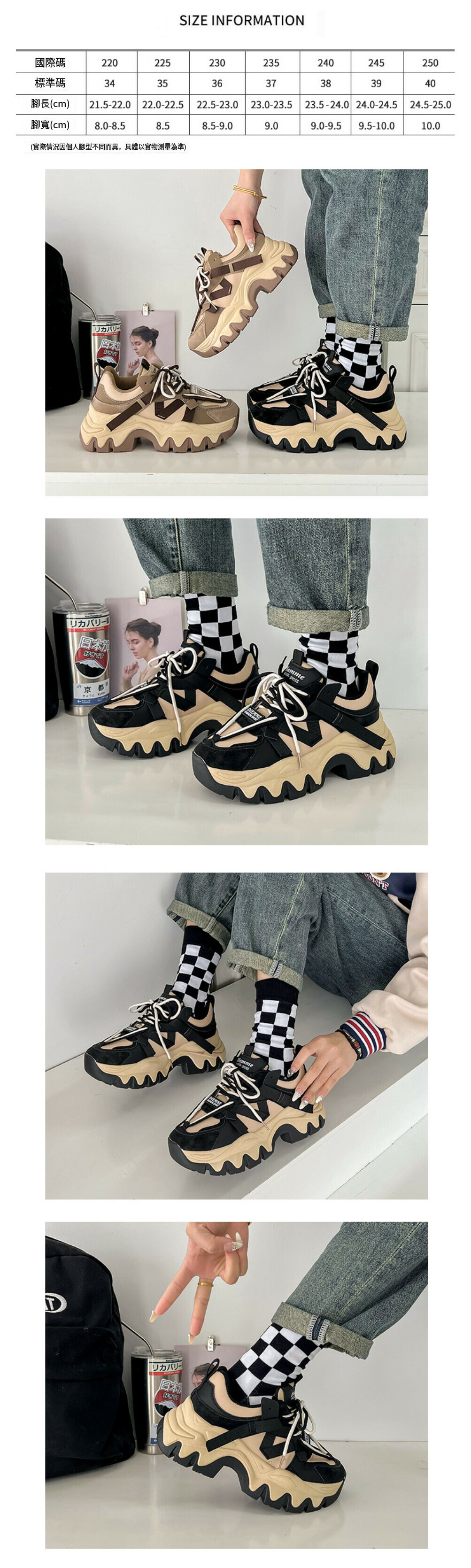 熱賣皮面休閒老爹鞋【卡其色】【35-40碼】(下單後請聯絡客服確認發貨尺碼)