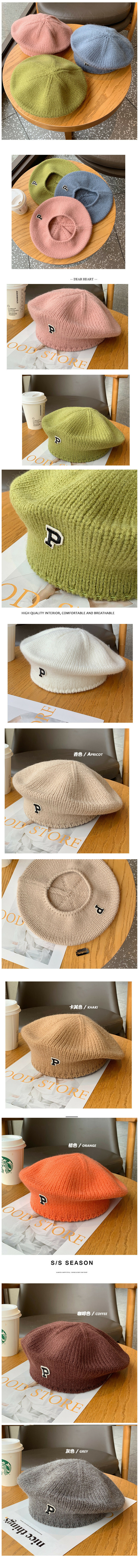 熱賣字母P標貝雷帽針織毛線畫家帽子(均碼(55-60cm)彈性頭圍 紫色)