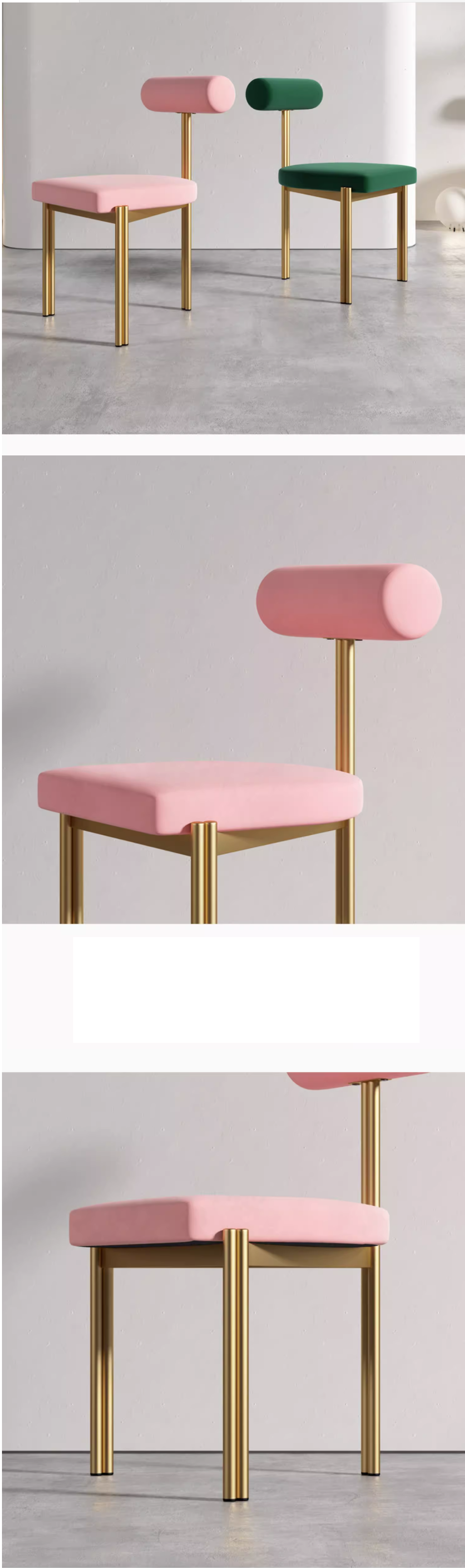 熱賣輕奢簡約三角靠背餐椅(粉絨布*黑架)(尺寸:45*45*78CM)