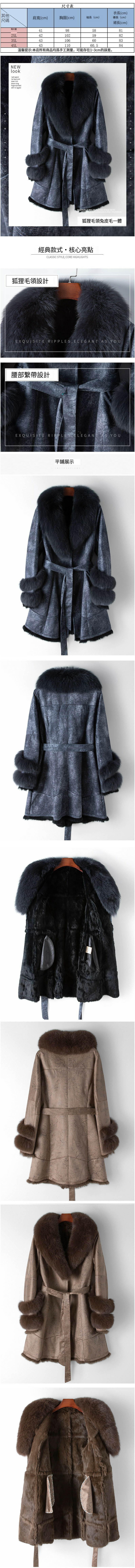 熱賣長款狐狸毛領兔皮毛一體外套(XL-4XL碼)(灰藍色)(下單後聯絡客服確認發貨尺碼)