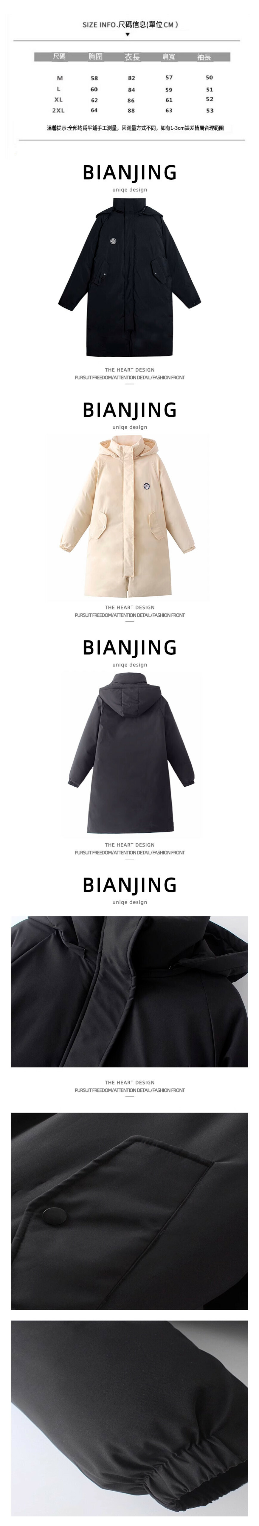 熱賣長款連帽棉服加厚外套【黑色】(尺碼:S-2XL碼) (下單後請聯絡客服確認發貨尺碼)
