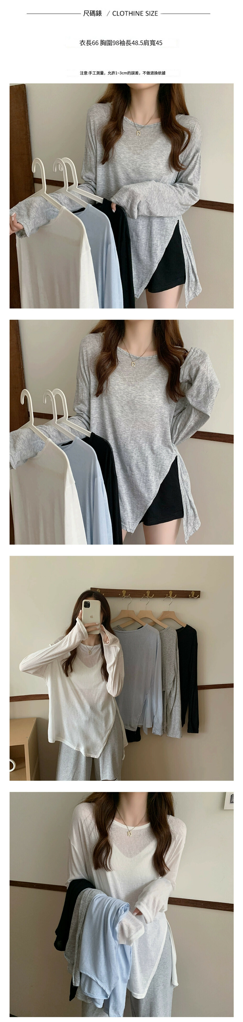熱賣長款寬鬆薄款開叉T恤【淺藍】【均碼】