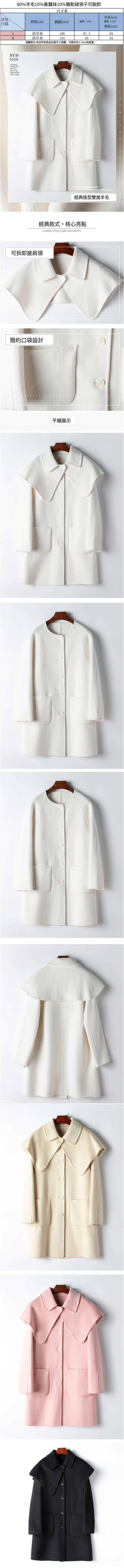 熱賣長款荷葉領雙面毛呢外套(S/M碼)(米白色)(下單後聯絡客服確認發貨尺碼)