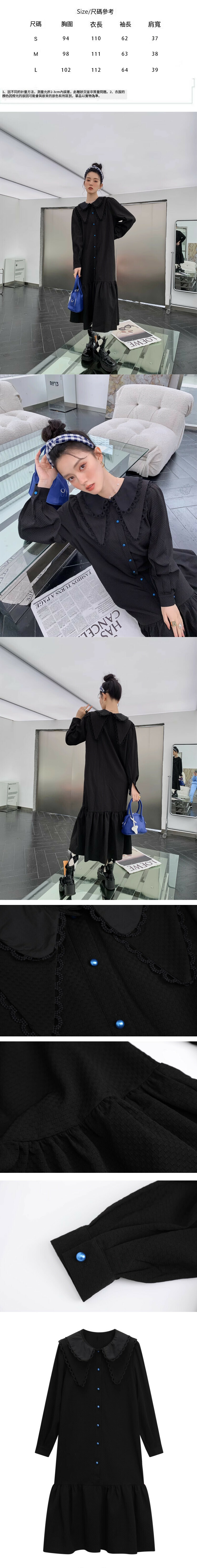 熱賣長袖魚尾長款襯衫裙(黑色)(S-L碼)(下單後聯絡客服確認發貨尺碼)