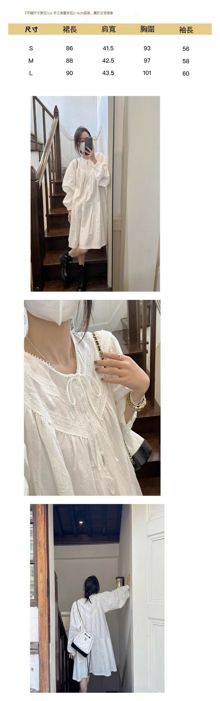 熱賣長袖連衣裙【白色】尺碼【S碼—XL碼】【下單後請聯絡客服確認發貨尺碼】