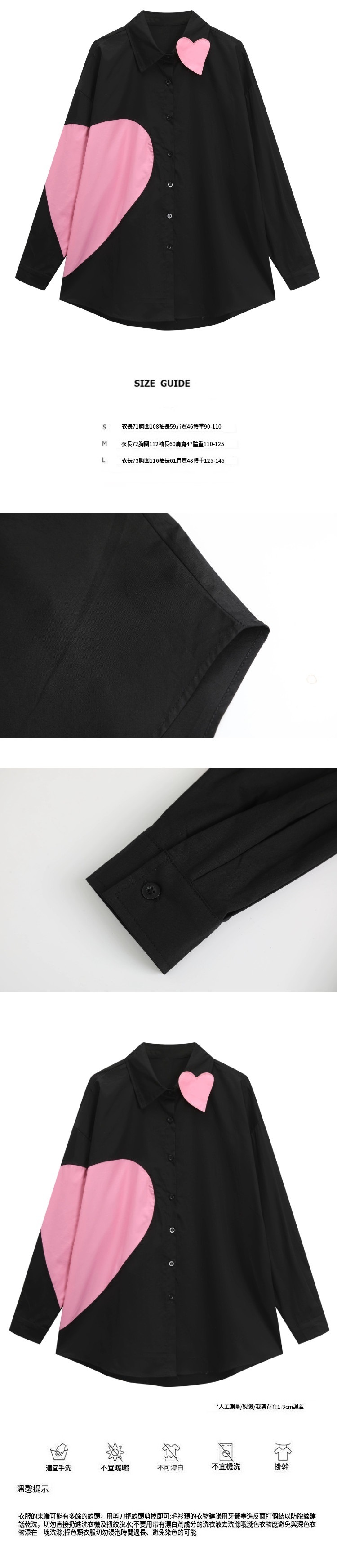 熱賣長袖愛心襯衫(黑色)(S-L碼)(下單後聯絡客服確認發貨尺碼)