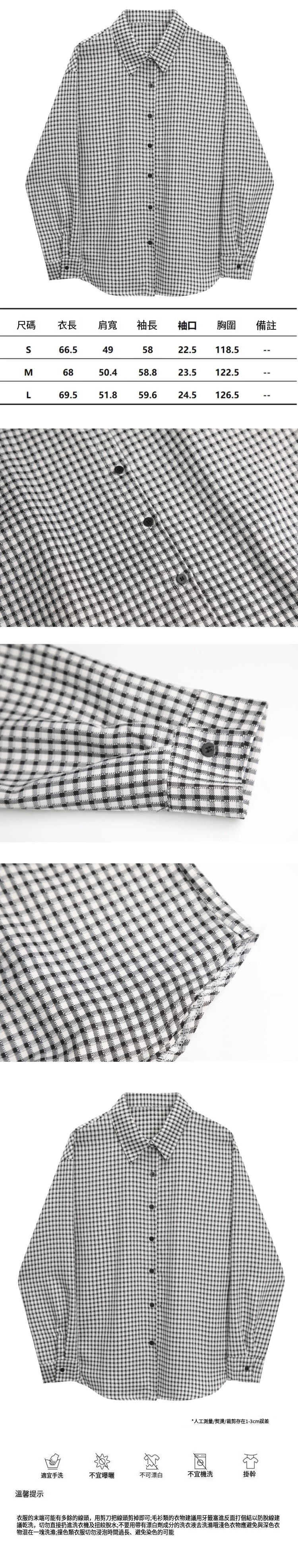 熱賣長袖格子襯衫(黑白格子)(S-L碼)(下單後聯絡客服確認發貨尺碼)
