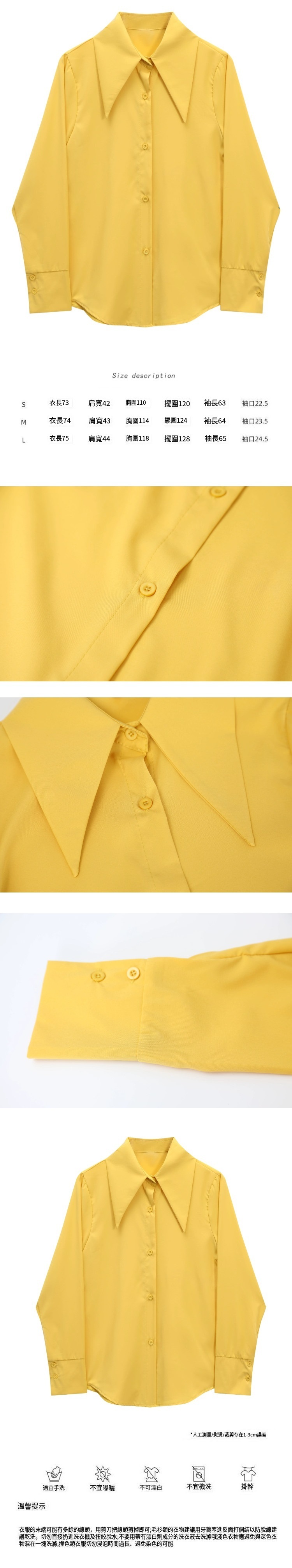 熱賣長袖尖領襯衫(黃色)(S-L碼)(下單後聯絡客服確認發貨尺碼)