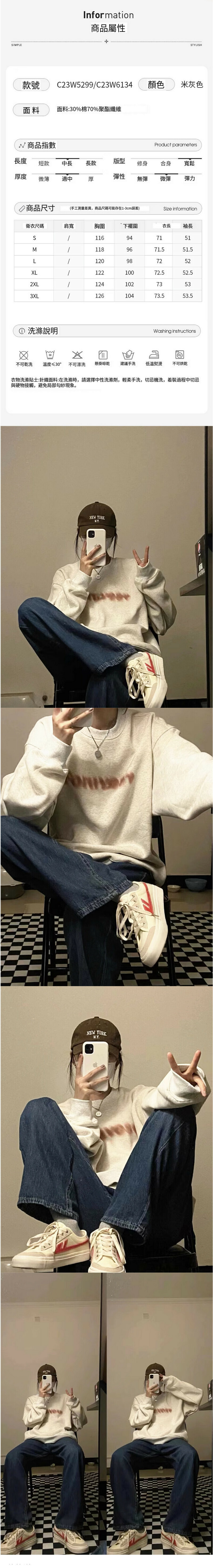 熱賣長袖圓領套頭衛衣(米灰色加絨 S碼-XXXL碼)(下單後請聯絡客服確認發貨尺碼)