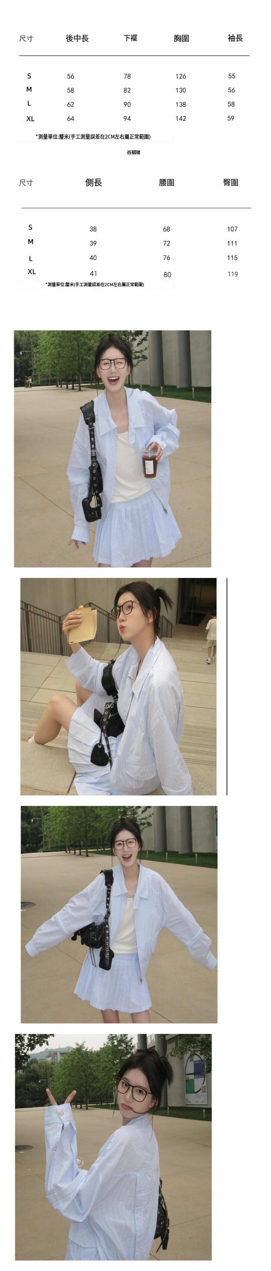熱賣長袖防曬襯衫上衣【藍白條紋上衣】尺碼【S碼—XL碼】【下單後請聯絡客服確認發貨尺碼】