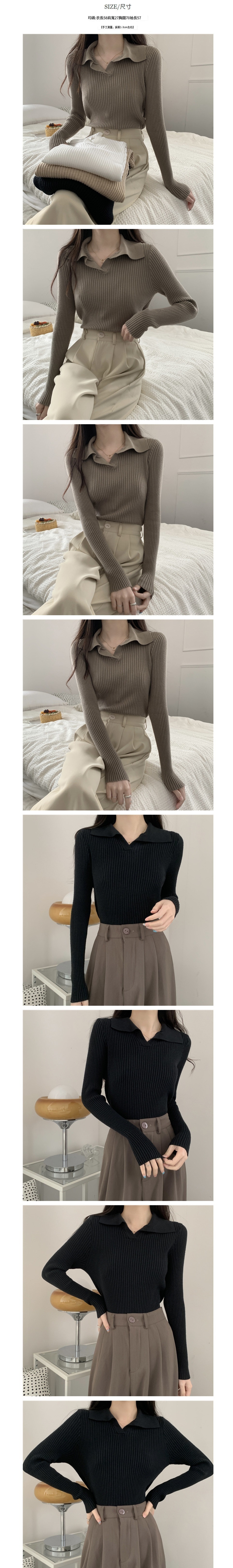 熱賣長袖針織衫女溫柔內搭毛衣上衣(杏色)(尺碼:均碼)