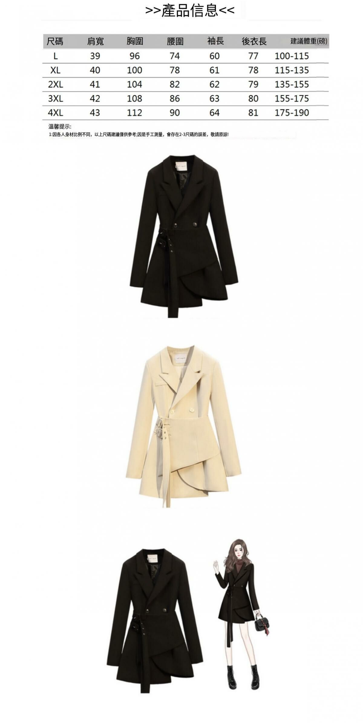 熱賣長款西裝外套【黑色】【L-4XL碼】(下單後請聯絡客服確認發貨尺碼)