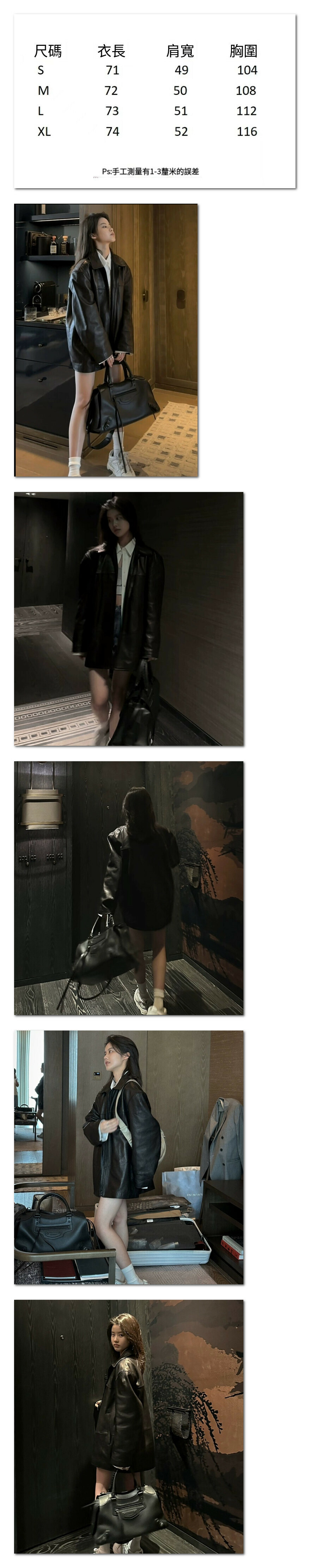 熱賣寬鬆顯瘦機車風PU皮夾克上衣外套(質感黑色) (尺碼:S/M/L/XL)(下單後聯絡客服確認發貨尺碼)