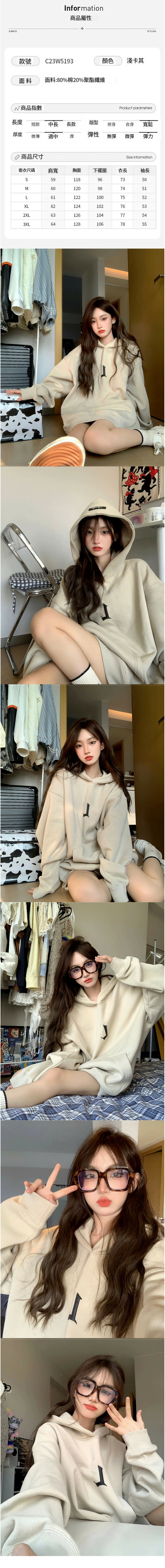熱賣寬鬆連帽衛衣(淺卡其 S碼-XXXL碼)(下單後請聯絡客服確認發貨尺碼)
