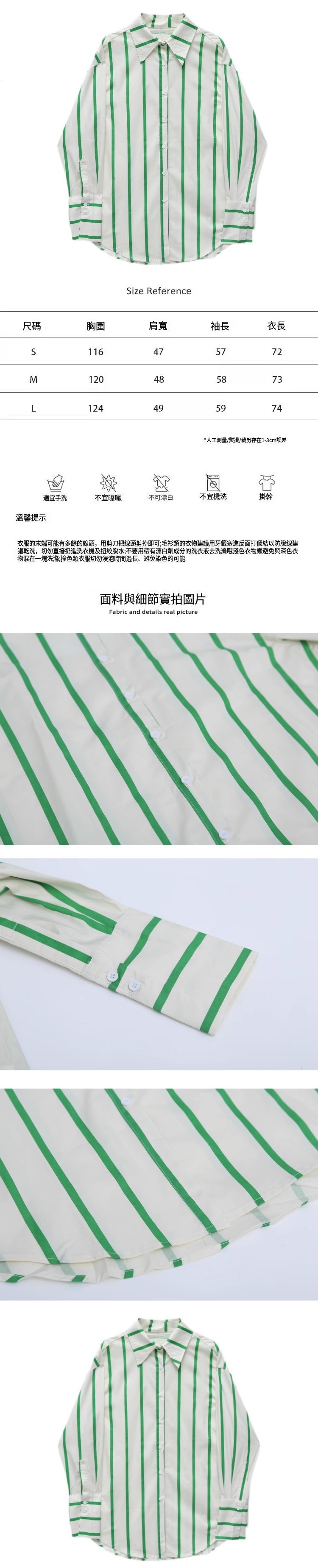 熱賣寬鬆長袖條紋襯衫(淺綠色)(S-L碼)(下單後聯絡客服確認發貨尺碼)