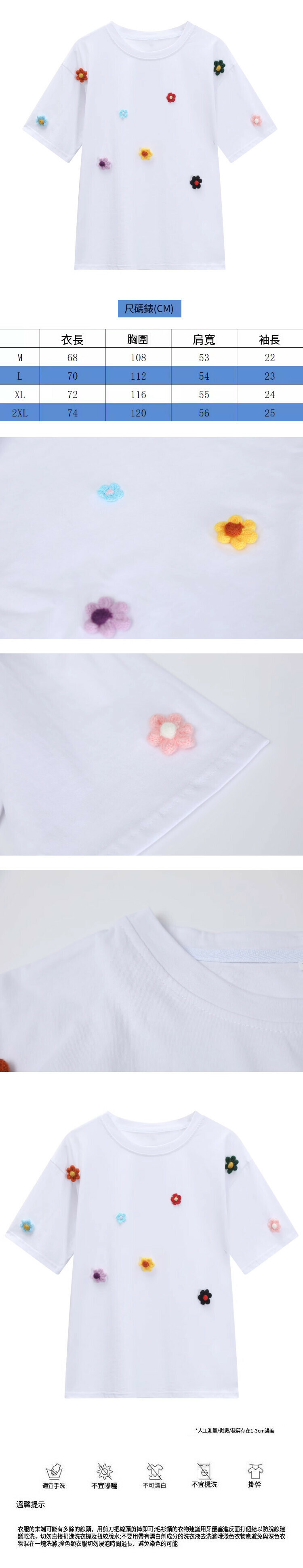 熱賣寬鬆圓領花朵短袖T恤(白色)(S-2XL碼)(下單後聯絡客服確認發貨尺碼)