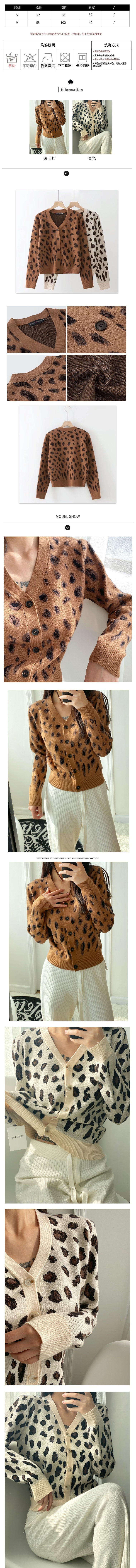 熱賣寬鬆V領豹紋針織開衫(深卡其)(S/M碼)(下單後聯絡客服確認發貨尺碼)