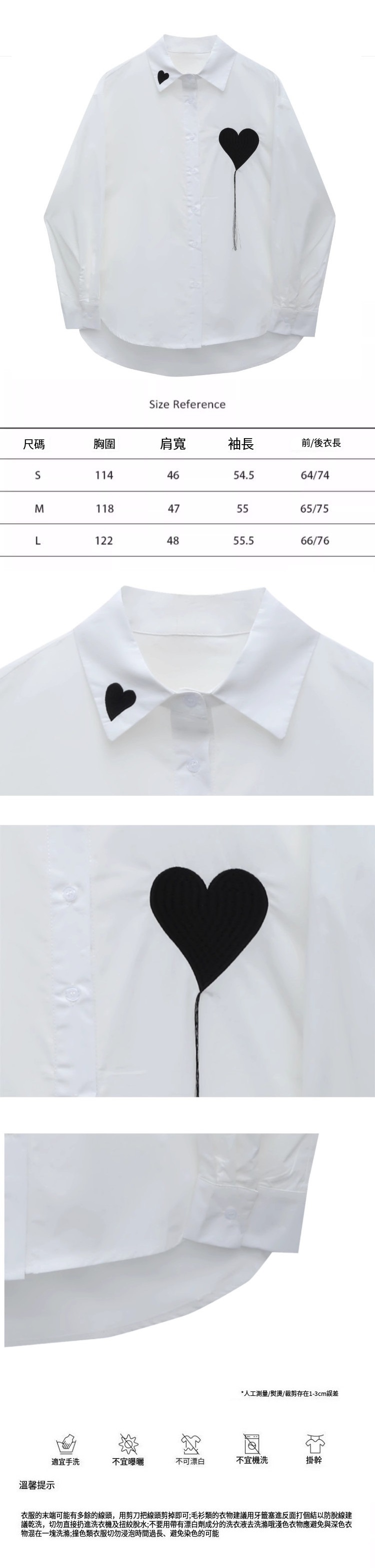熱賣愛心刺繡翻領襯衣(白色)(S-L碼)(下單後聯絡客服確認發貨尺碼)
