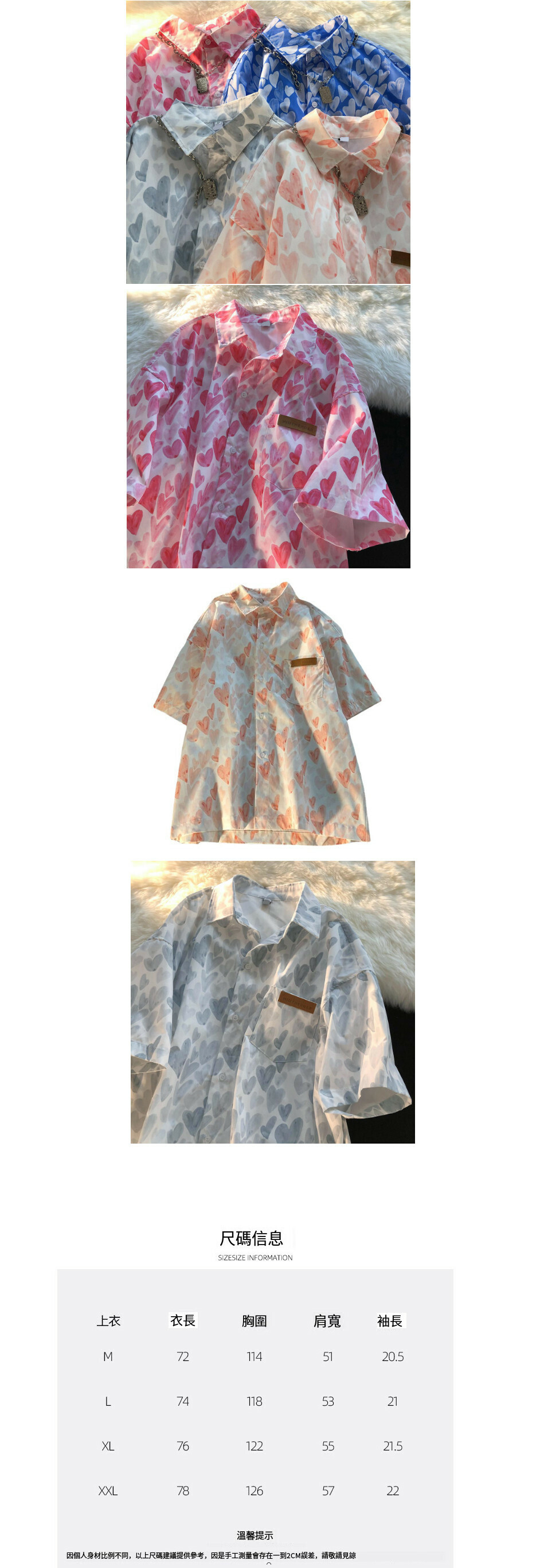 熱賣滿身愛心印花襯衫(橘色)(尺碼M-XL)(下單後聯絡客服確認發貨尺碼)