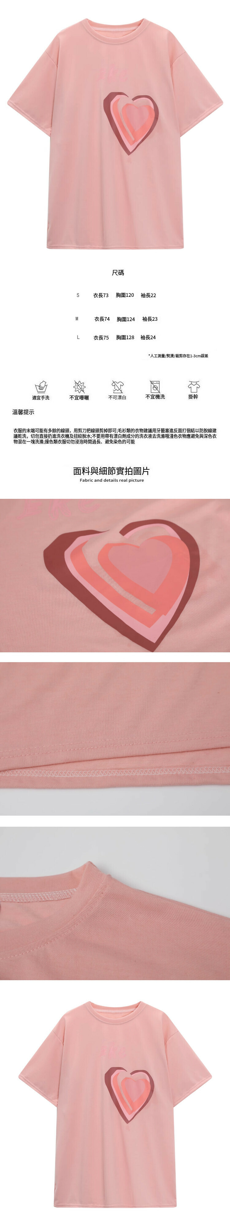 熱賣愛心短袖T恤(粉色)(S-XL碼)(下單後聯絡客服確認發貨尺碼)