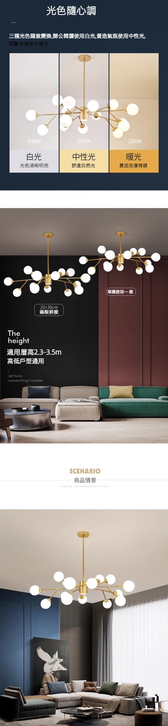 熱賣魔豆分子吊燈(金色9頭/三色變光/45W)