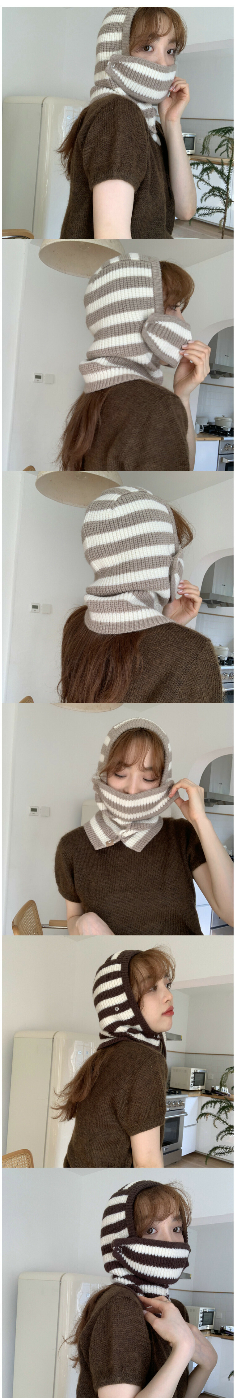 熱賣口罩圍脖一體套頭針織護耳毛線帽(均碼 06#-灰色條紋)