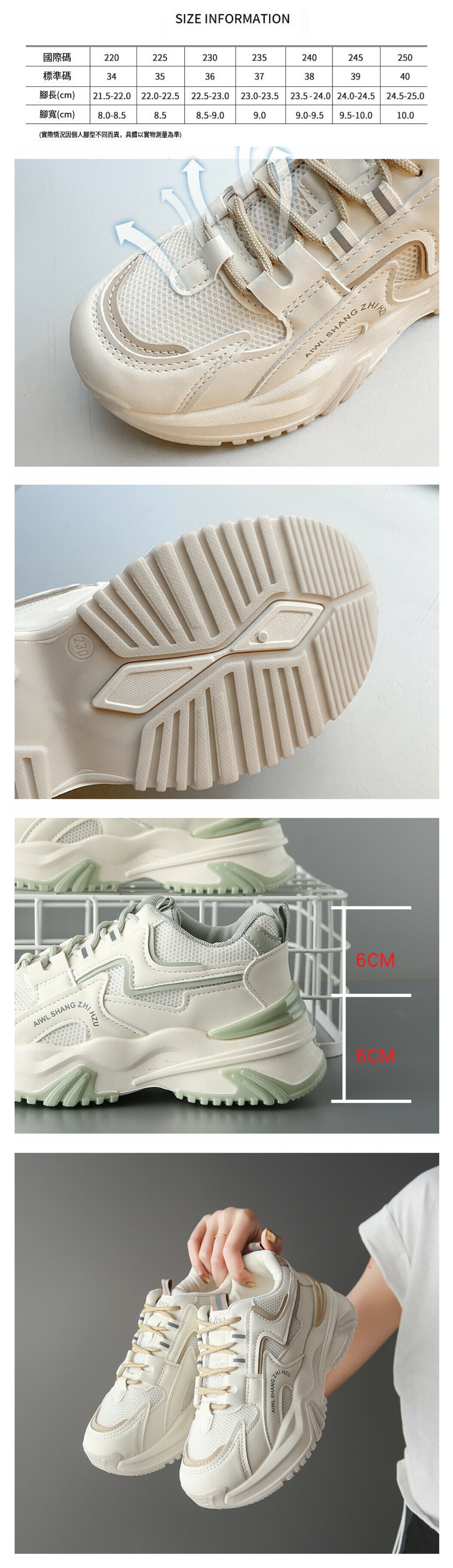 熱賣網面透氣老爹鞋【米白色】【35-40碼】(下單後請聯絡客服確認發貨尺碼)