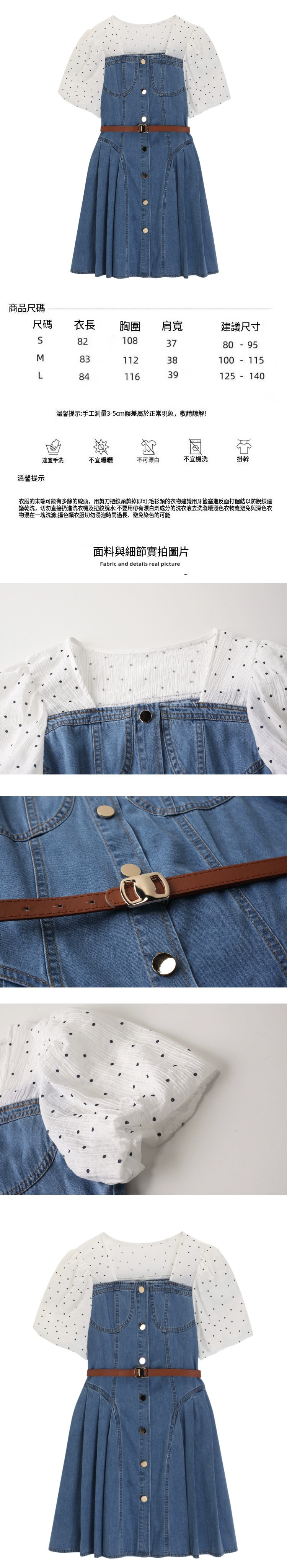 熱賣網紗泡泡袖牛仔長裙(深藍色)(S-L碼)(下單後聯絡客服確認發貨尺碼)