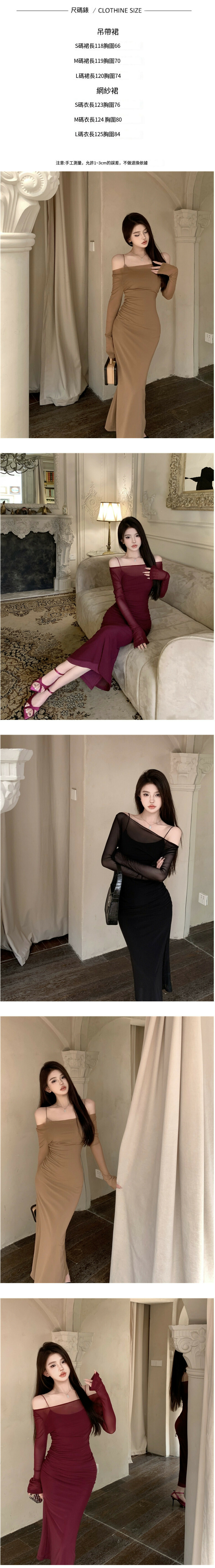 熱賣網紗+吊帶連衣裙【卡其】【S-L碼】(下單後請聯絡客服確認發貨尺碼)
