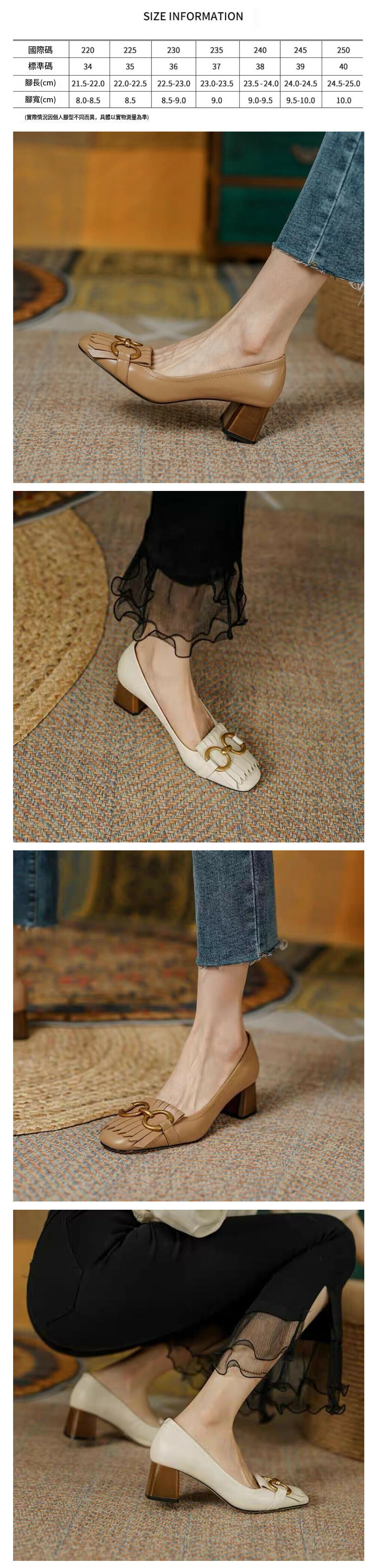 熱賣金屬馬銜扣單鞋【米色】【34-39碼】(下單後請聯絡客服確認發貨尺碼)