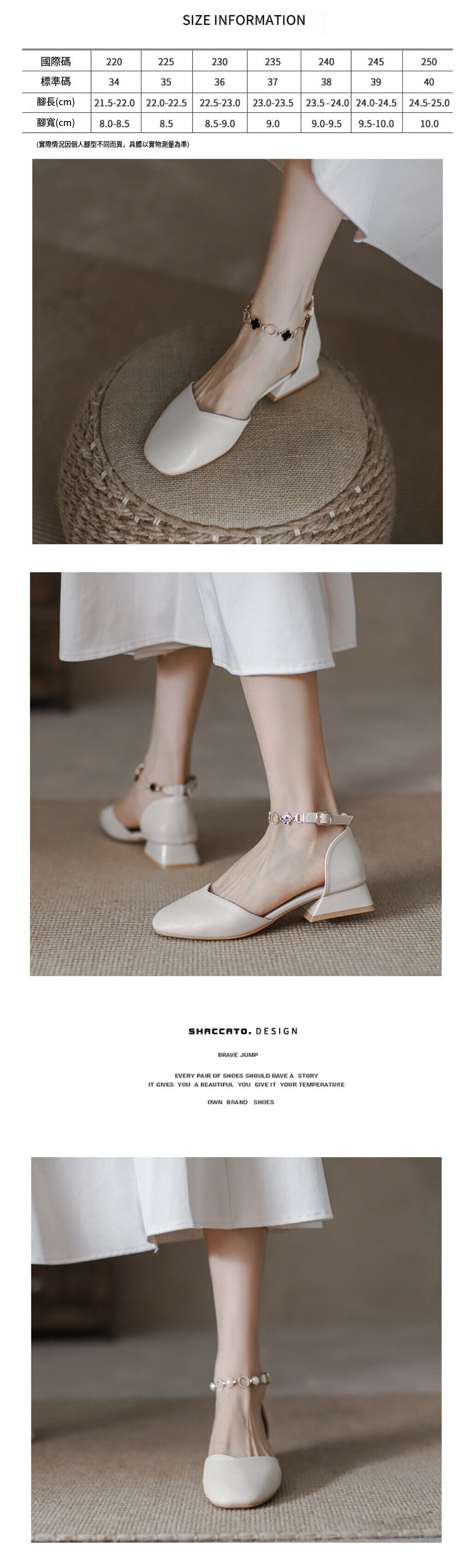 熱賣中跟中空涼鞋【杏色(珍珠款)】【34-40碼】(下單後請聯絡客服確認發貨尺碼)