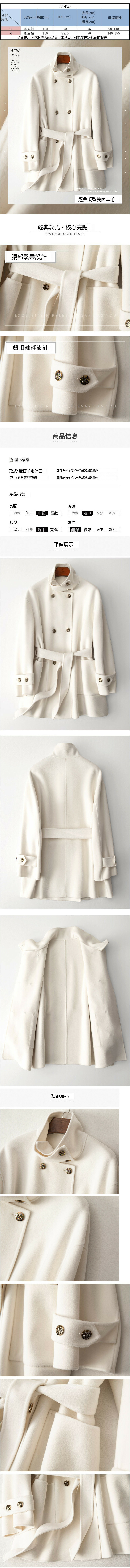 熱賣系帶中長款雙面呢大衣(S/M碼)(白色)(下單後聯絡客服確認發貨尺碼)