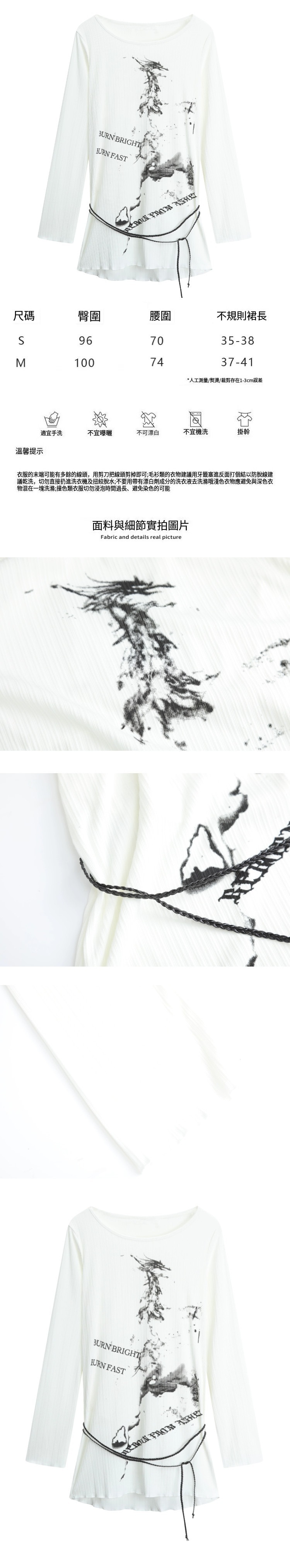 熱賣中長款長袖印花打底裙(白色)(S/M碼)(下單後聯絡客服確認發貨尺碼)