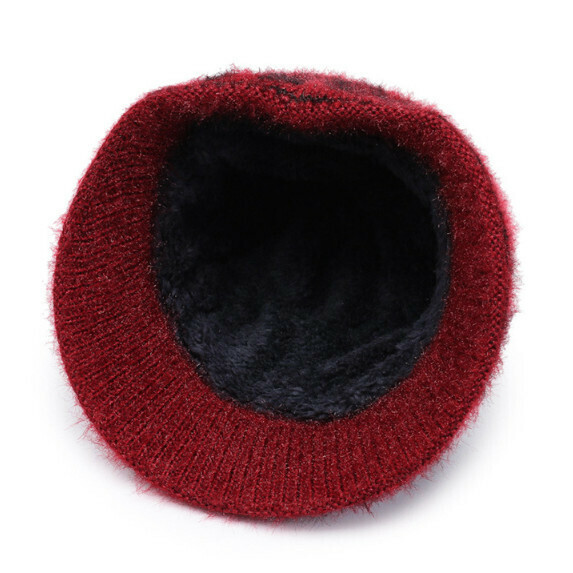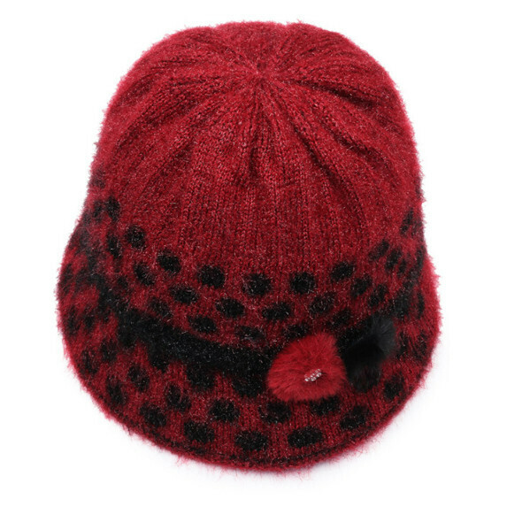 熱賣中老年豹點保暖毛線帽女(紅色)