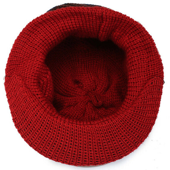 熱賣中老年加厚雙層鴨舌毛線帽女(酒紅色雙面戴)